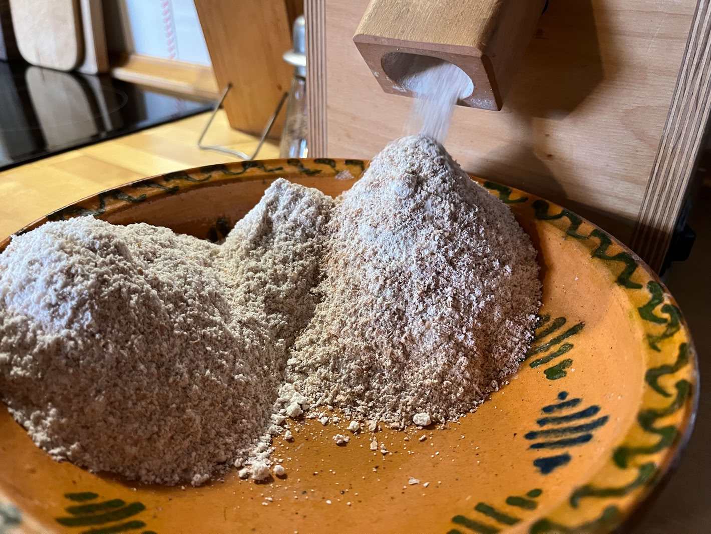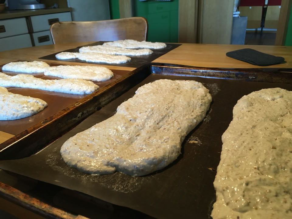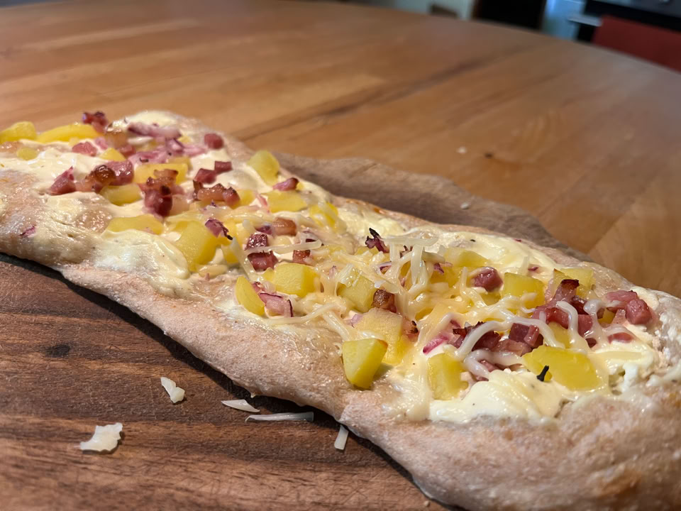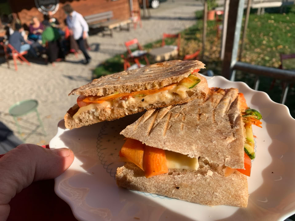 Auch diese werden selbst gebacken. In der Regel von Kraichgaukorn-Dinkelmehl, teilweise frisch gemahlen. Der Meerrettich für die Aufstriche kommt auch aus unserem Garten. Saisonal gibt es verschiedene Burger, Tomaten- und Humus-Brot, Flammbrot…..